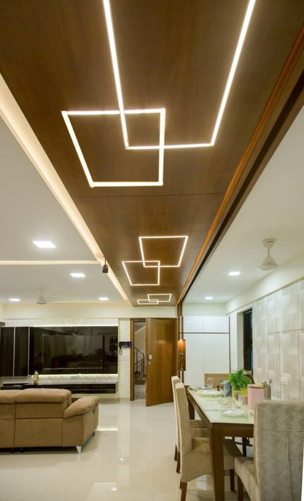 Using a profile light ceiling design for the living room can transform your entertainment space. Introducing LED profile lighting to the TV unit not only adds an extra layer of aesthetics but also provides good practical light. They make a decor on the scene, which is nice to have, such a mood-enhancing ambiance. You can also give depth and dimension to the room with a false ceiling profile light. Homeowners can also test the waters with recessed profile lighting or linear light patterns for a more contemporary feel. This soft feel and look radiating from our wood challenge how you, your family, and visitors think of living room lighting.