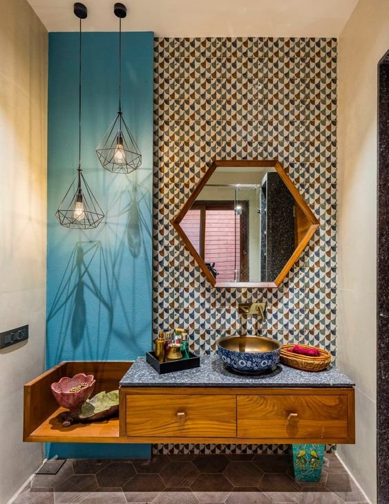 Try hanging some humorous, aquatic-themed artwork in a kids’ bathroom for a lively and long-lasting look. We’ve seen everything from “Surf’s Up” posters to goldfish prints with shark fins in the past, but this “Beach Barbie” shot tops the cake. To drive home the motif, designers utilised a bubble-gum pink area rug that may be switched out later. we hope these bathroom interior design ideas will give a trendy look to your bathroom.