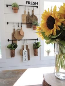 So, how on the surface do you make something like a breadboard? Try using geometric lines to guide your setup and make a grouping of boards. If your board in kitchen has a loop on the handle, just hand the board for an elegant look. Or you can try screwing little hooks on the back and then installing them to make floating touch.