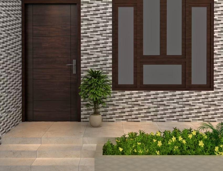 Glass finish tiles are a beautiful choice for house owners in search of a graceful and cutting-edge modern-day front wall tiles design. These tiles are available in plenty of patterns—from undeniable and minimalist to decorative options—allowing you to match the appearance you choose. If you opt for a smooth and contemporary look without styles or heavy detailing, an easy glass end tile is perfect for growing a refined outside. Its reflective floor adds brightness, complements visible depth, and right away upgrades your own home’s façade. With sturdiness and beauty combined, glass end tiles provide a timeless manner to raise the front wall effects.