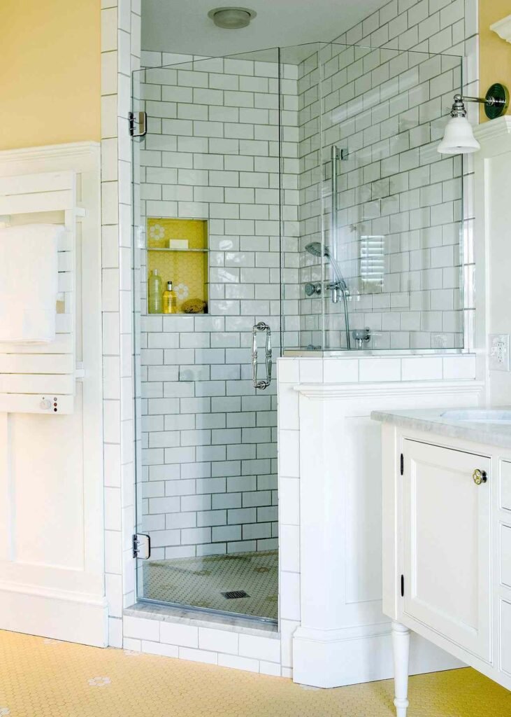 When you walk in, angle the door toward the entryway to get a welcoming one. If you need to add workability as well as sleek design, neo-angle showers can be added to your list of small bathroom walk in shower ideas with panache.