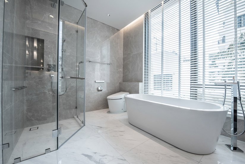 A neo-angle walk-in shower is a great solution for small bathrooms with atypical layouts and/or nudging around obstructions. Unlike the standard corner shower, its walls are slanted and it is usually has a door that hinged in one of its wall, making it have an unconventional and modern look than just the tradition one. This model will help you utilize the maximum space on your floor and give a more open look to make your bathroom compartments appear spacious.