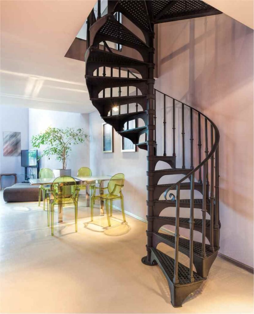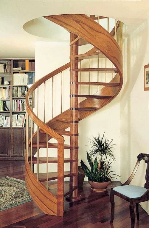 Helical stairs Helical staircases are a design statement, and will leave your visitors impressed by your unique choice of Small Space Stairs Design. The way the staircase comes with a twist and wraps itself around its supporting pole reveals an enchanting path. Their sleek, curved design makes going up and down a breeze, a time-saver with style.