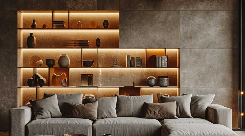 9. Porcelain Tiled Wall Behind Sofa