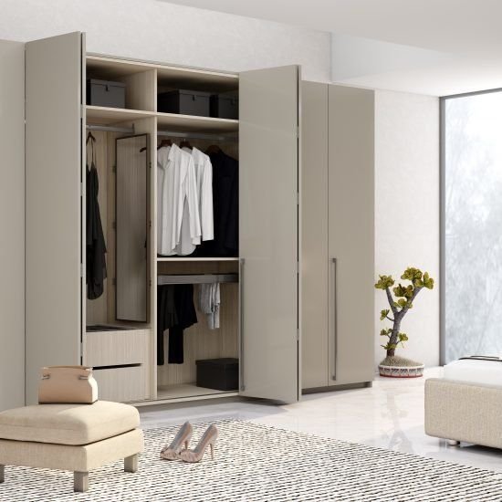 Pivot doors are the solution in case you want to make a statement. They swivel around a mid-point hinge, producing a spectacular and contemporary appearance. The wardrobe are famous in high end houses and are also commonly employed to draw attention to tailor-made wardrobe plans. Pivot systems are ideal with bigger wardrobes, and can be tailored in high-end materials such as matte or lacquer or glass. They are popular among people who want to combine architecture and interior.