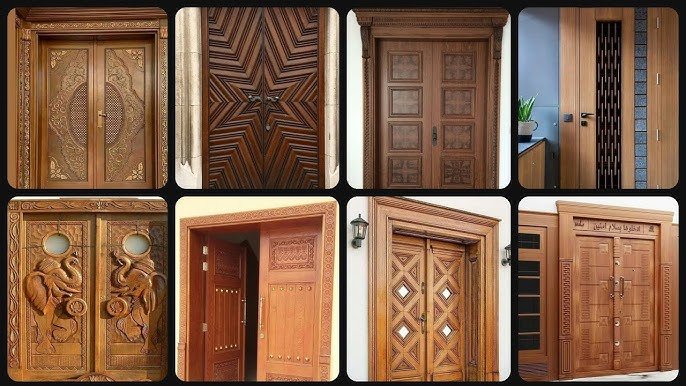 1. Carved teak wood double door design